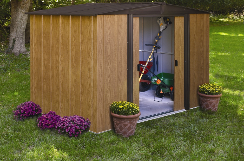Labri de jardin acier galvanise imitation bois wr108 est a prix direct import arrow usa jusqua 40 moins cher. Grace a sa porte coulissante cet abri noccasionne aucune perte de place dans le rangement et le stockage de tous vos outils. Pour encore plus de solidite labri en acier galvanise peut etre plastifie et vous trouverez nombre de modeles convaincants dans le catalogue france abris.